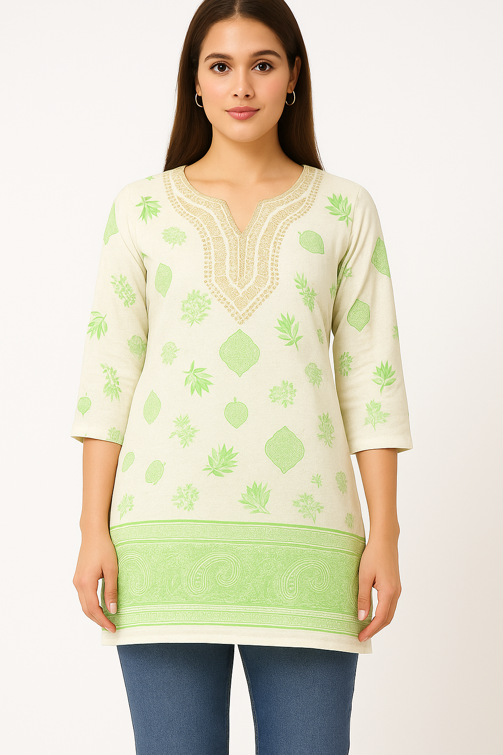 Whether you pair it with denims, leggings, or straight pants, this kurti offers versatile wearability with a dash of freshness.