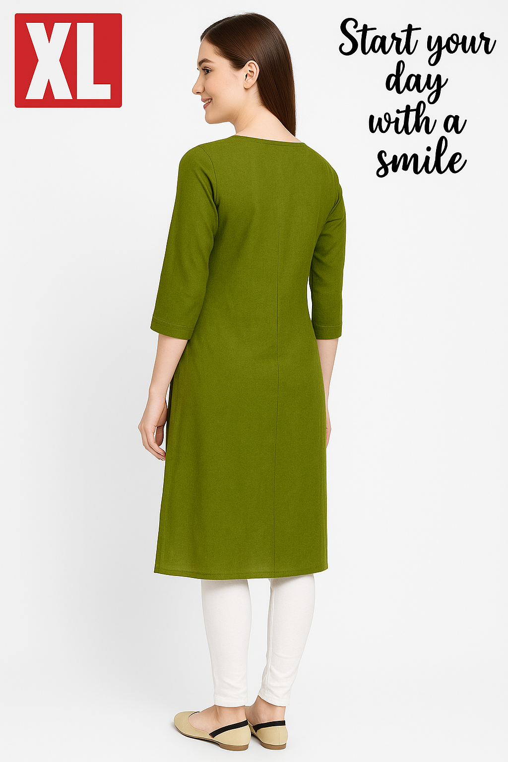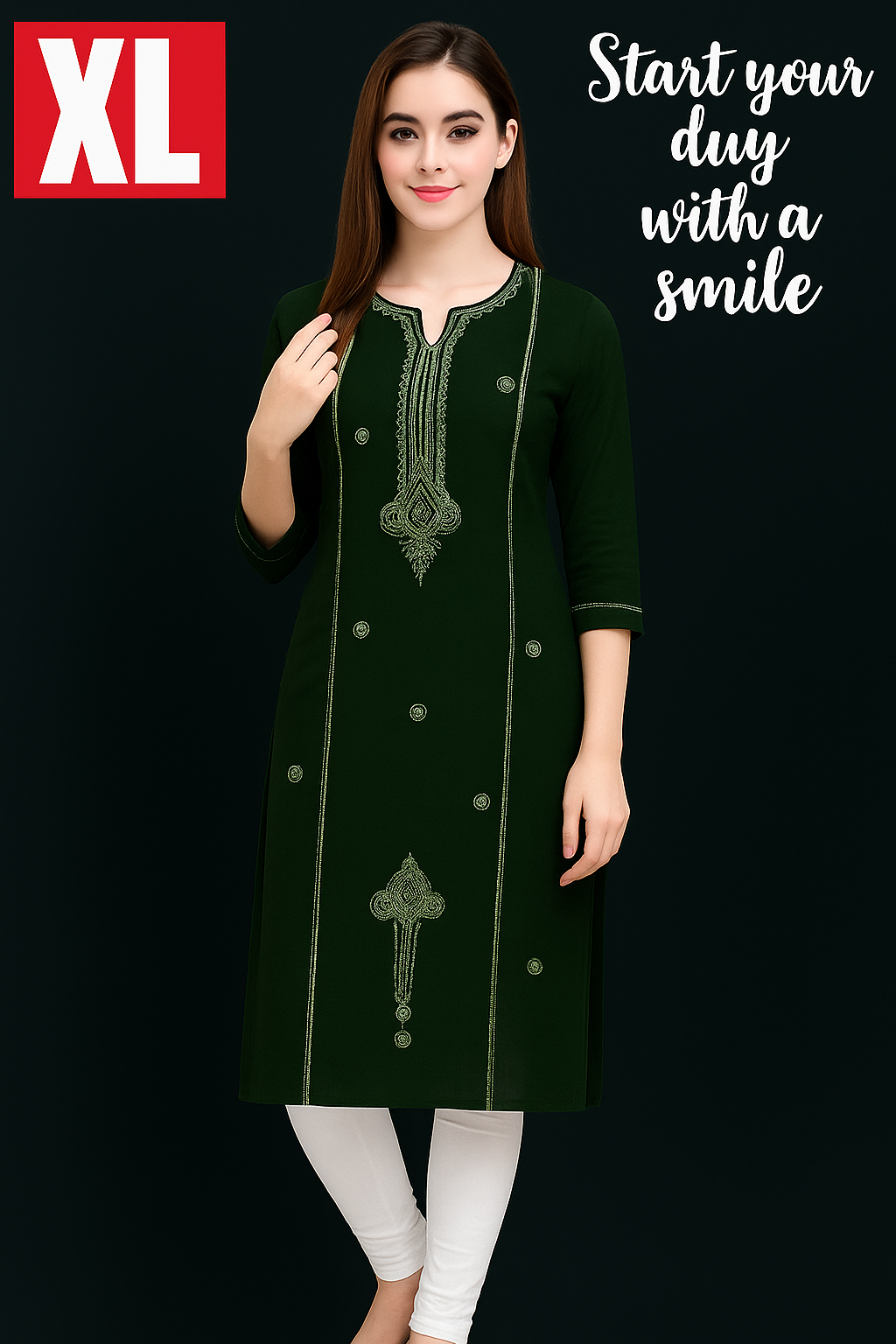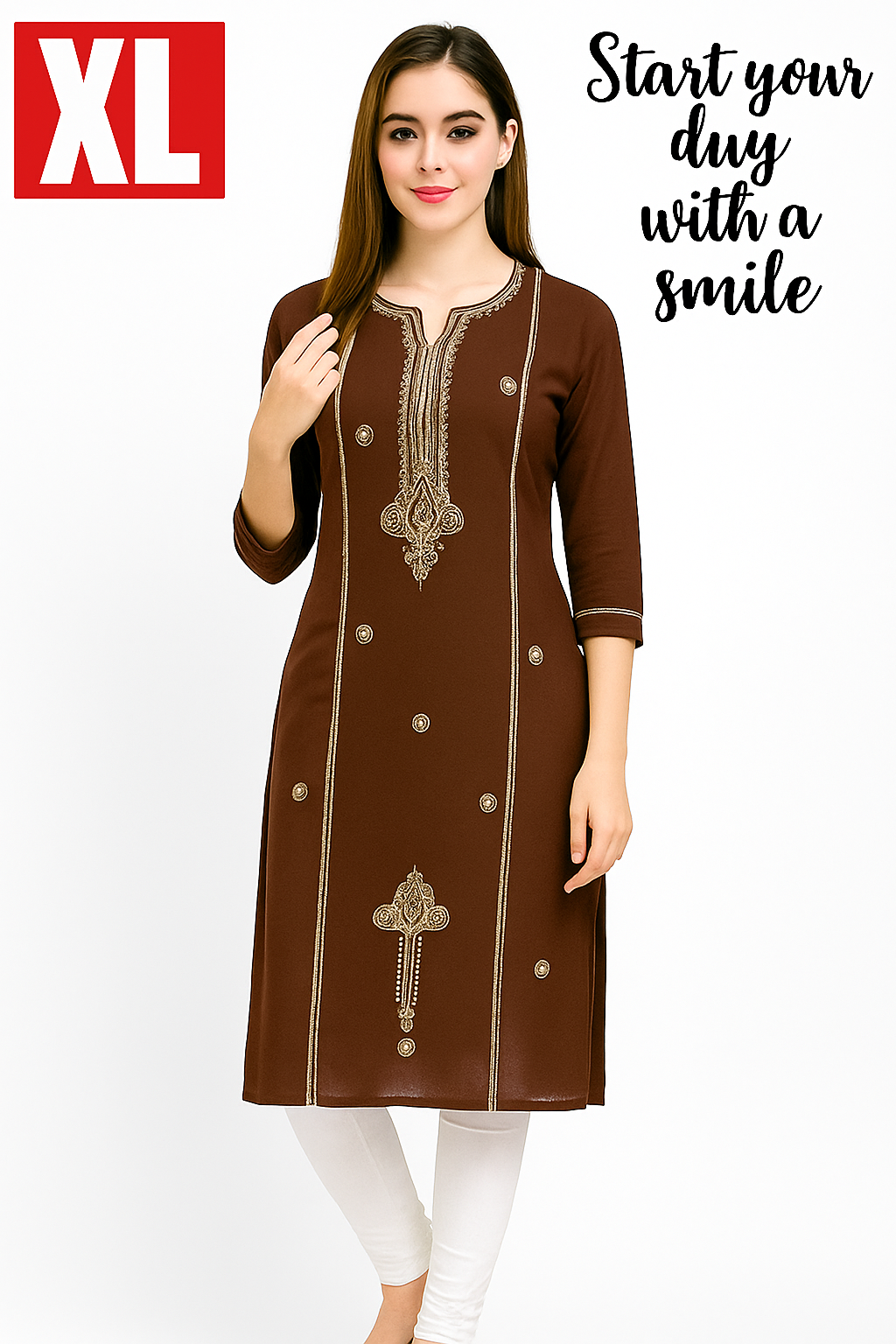 Add a splash of elegance and color to your everyday ethnic wardrobe with this beautifully embroidered straight kurti, available in five stunning shades β Pink, Yellow, Light Green, Dark Green, and Brown. Crafted from comfortable, breathable fabric, this kurti combines traditional charm with a modern silhouette, making it a versatile pick for daily wear, office days, or casual outings.